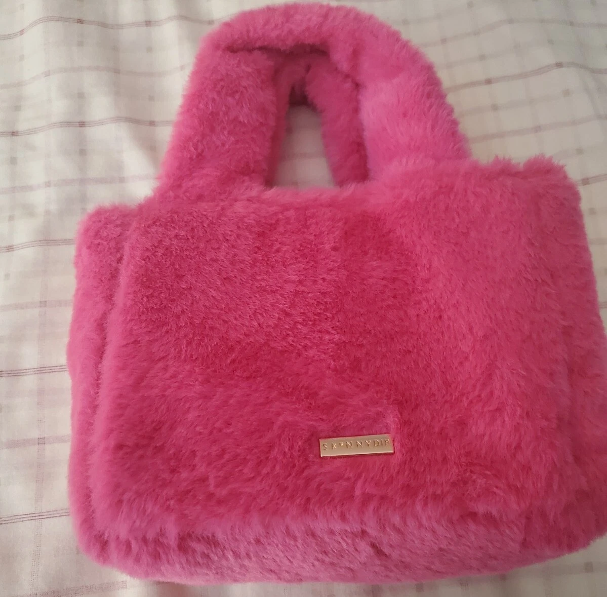 Barbie x SkinnyDip Pink Plush Fluffy Fur Tote Bag Purse Crossbody NEW