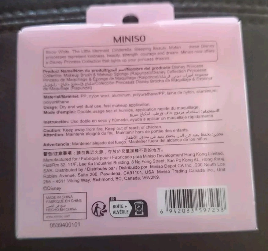 Tangled fans will love this cute kubuki brush and beauty blender set. Comes with one small pink brush and pink blender, Brush has white bristles with light pink top. Beauty belnder is light pink and soft . Works on all skin types . Shipped together . Packaging has chibi style Princess Rapunzel image on the front.