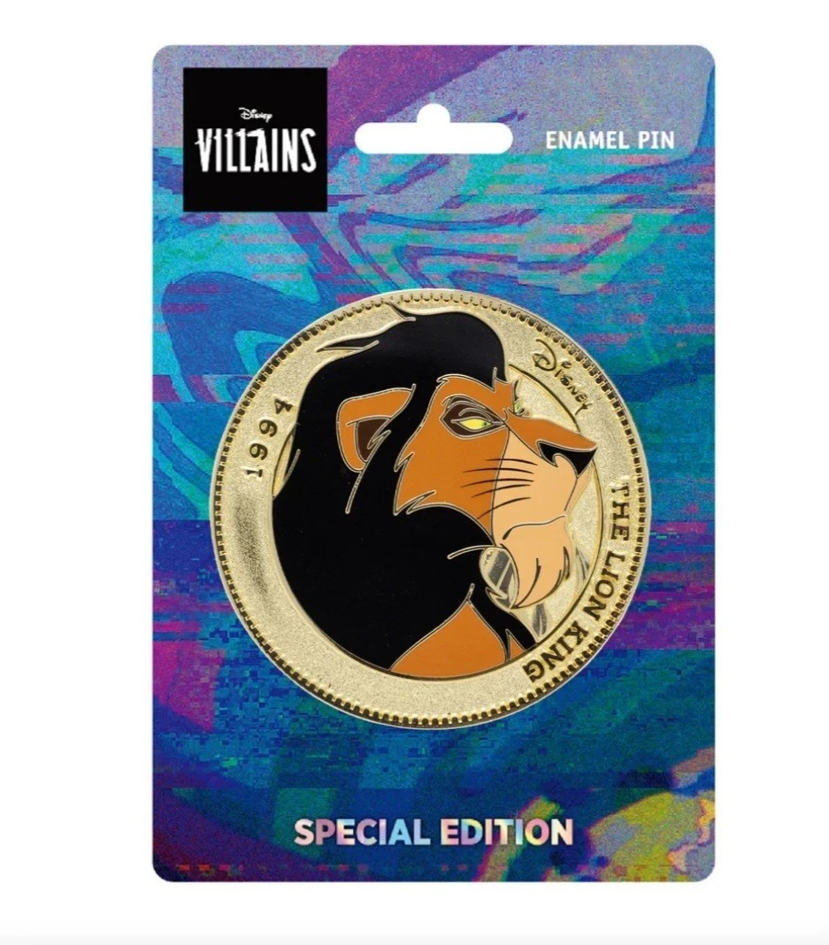 A super cool, highly limited edition of Disney’s The Lion King Scar gold plated Coin style pin. Has image of Scar in center with movie title and year of release . Limited to 300 made and no longer in circulation