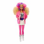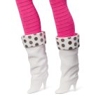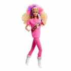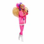 We got something totally awesome for ya. Mattel creations 40th anniversary Barbie Rockers Barbie Doll . Dressed in a sparkly hot pink blazer, hot pink leggings, metallic silver top, purple belt, white skirt and tall white boots with polka dot tops . She has feathery head gear with curly hair, decked out in 80’s make up and comes in the original 1986 style box. She also comes complete with a glittery transfer Barbie and the Rockers tee to change her into and even a white mic to rock out on. She’s limited so get her while you can