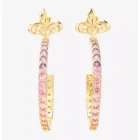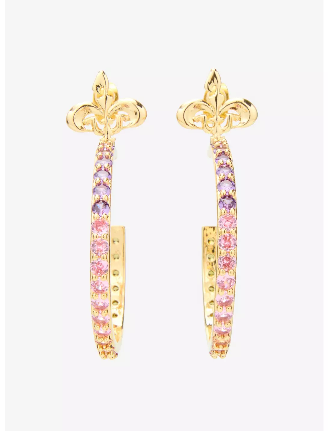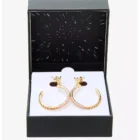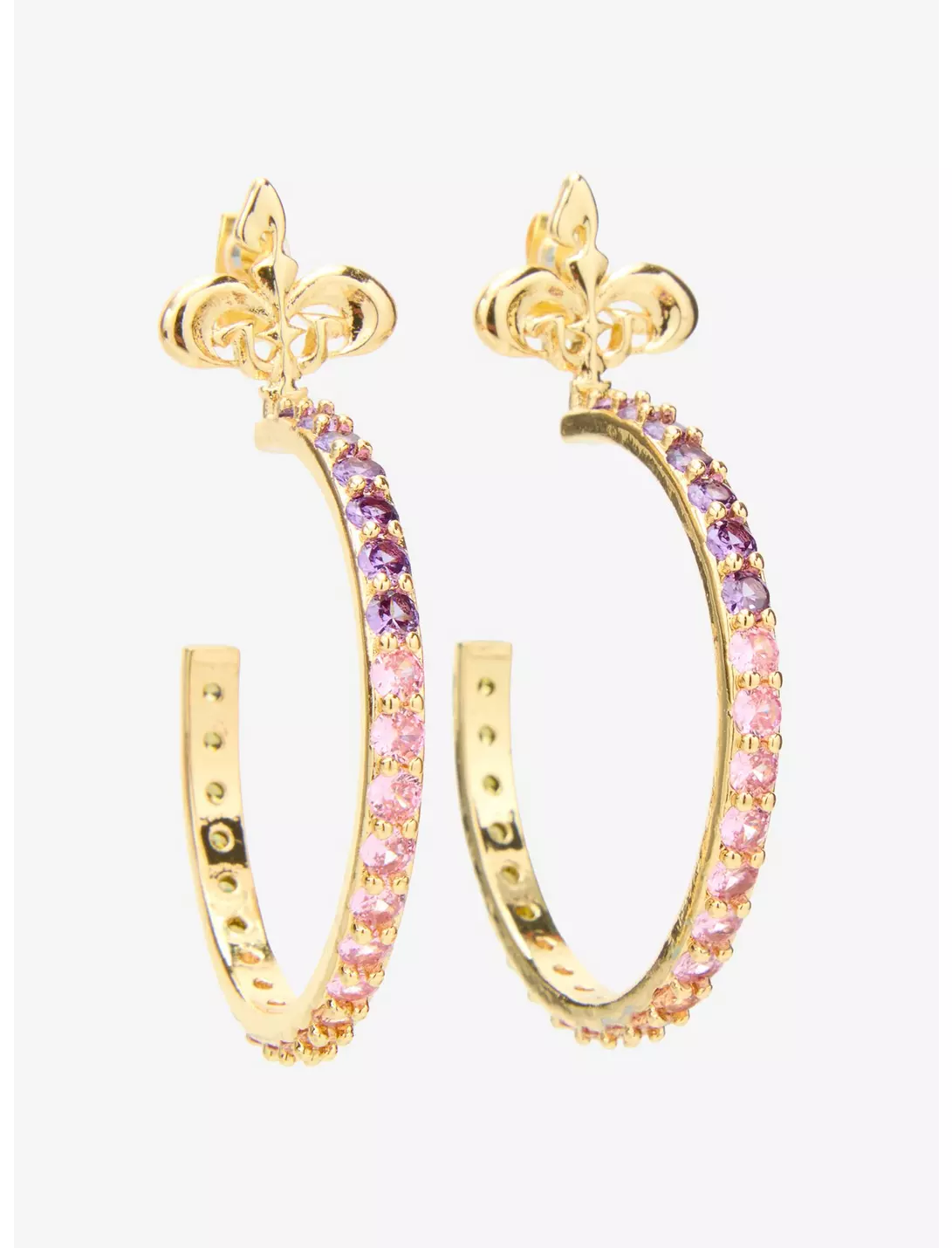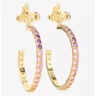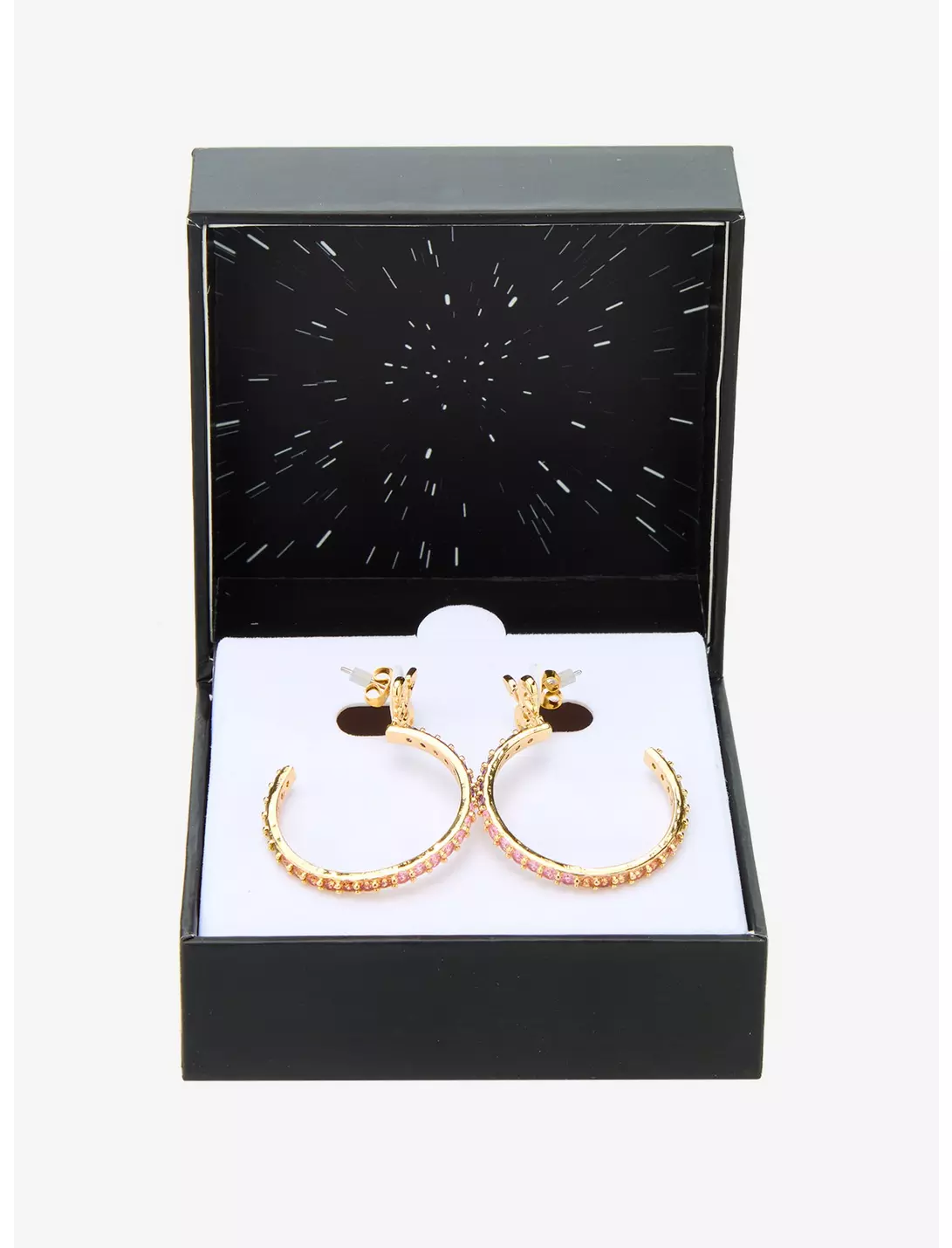 Adorn your ears   with these star wars Pad me  gem gold toned  hoop  earrings. Has gorgeous pink and purple  gems through out the hops. Naboo gold toned sumbols at tops studs. About 1  1/4 in diameter. comes in star wars gift box.