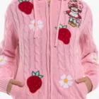 Be the first to review “Strawberry Shortcake pink cable knit Zip Up Hooded Sweater”