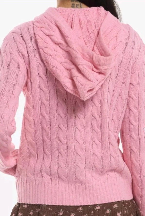 Strawberry Shortcake pink cable knit Zip Up Hooded Sweater