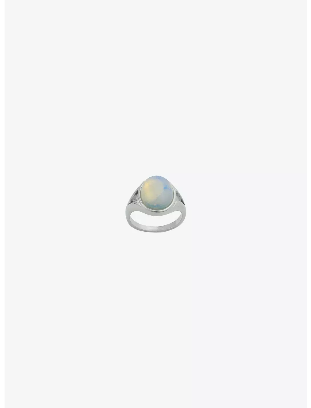 Silver toned. opalescent stone. ring size 7